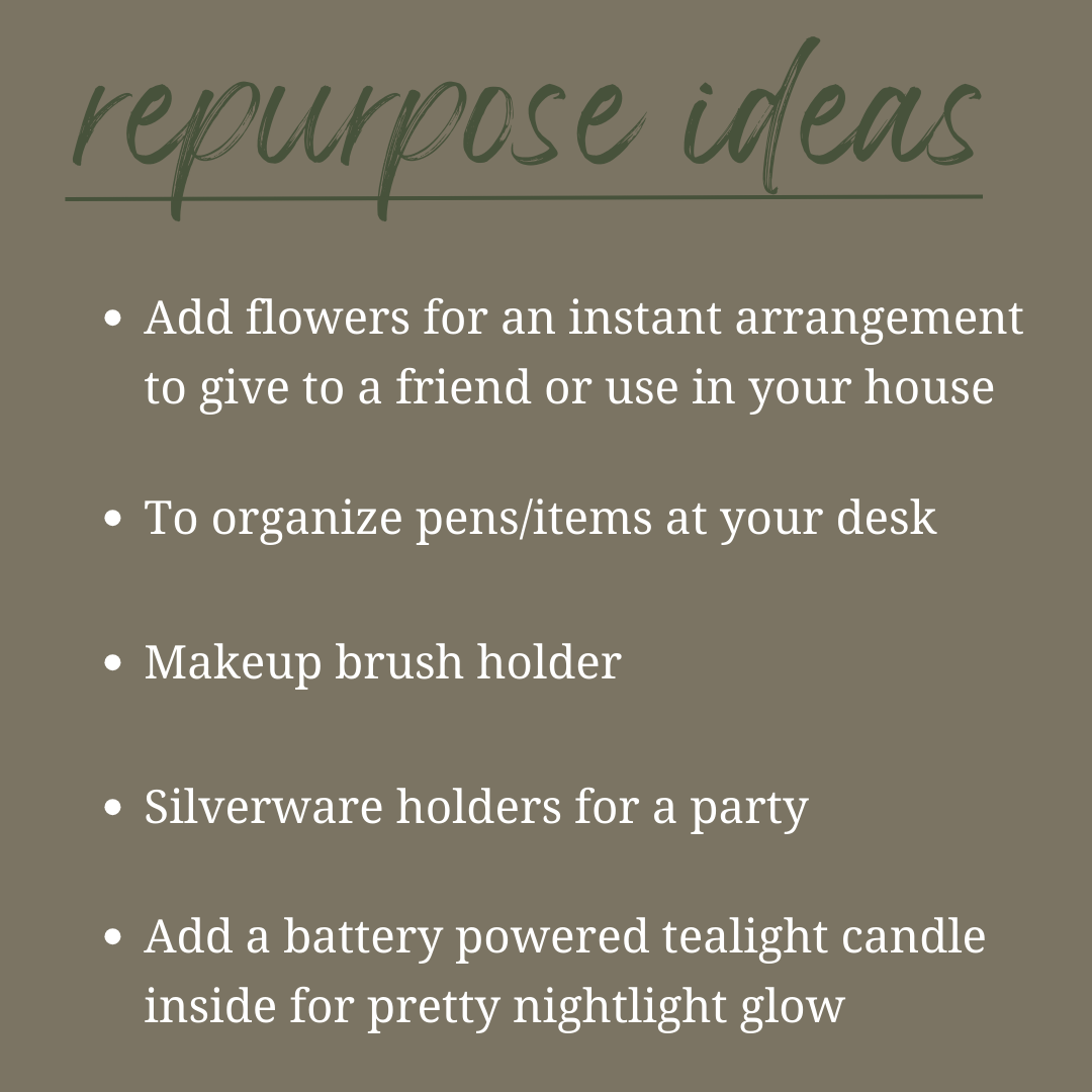 We believe in limiting waste on the earth. Our fragrant soy candles are housed in designer vessels meant to be reused once your candle has been fully enjoyed.