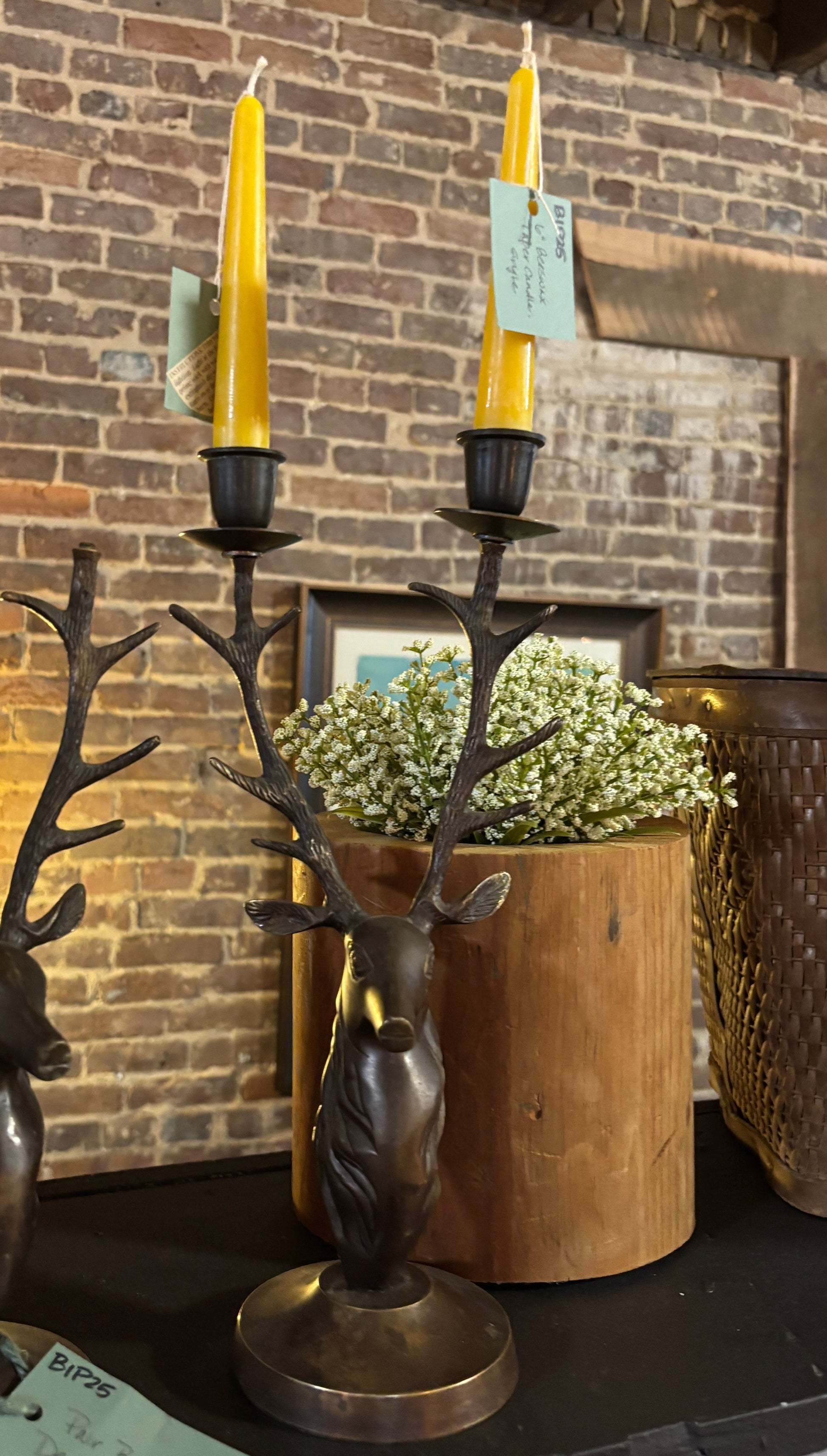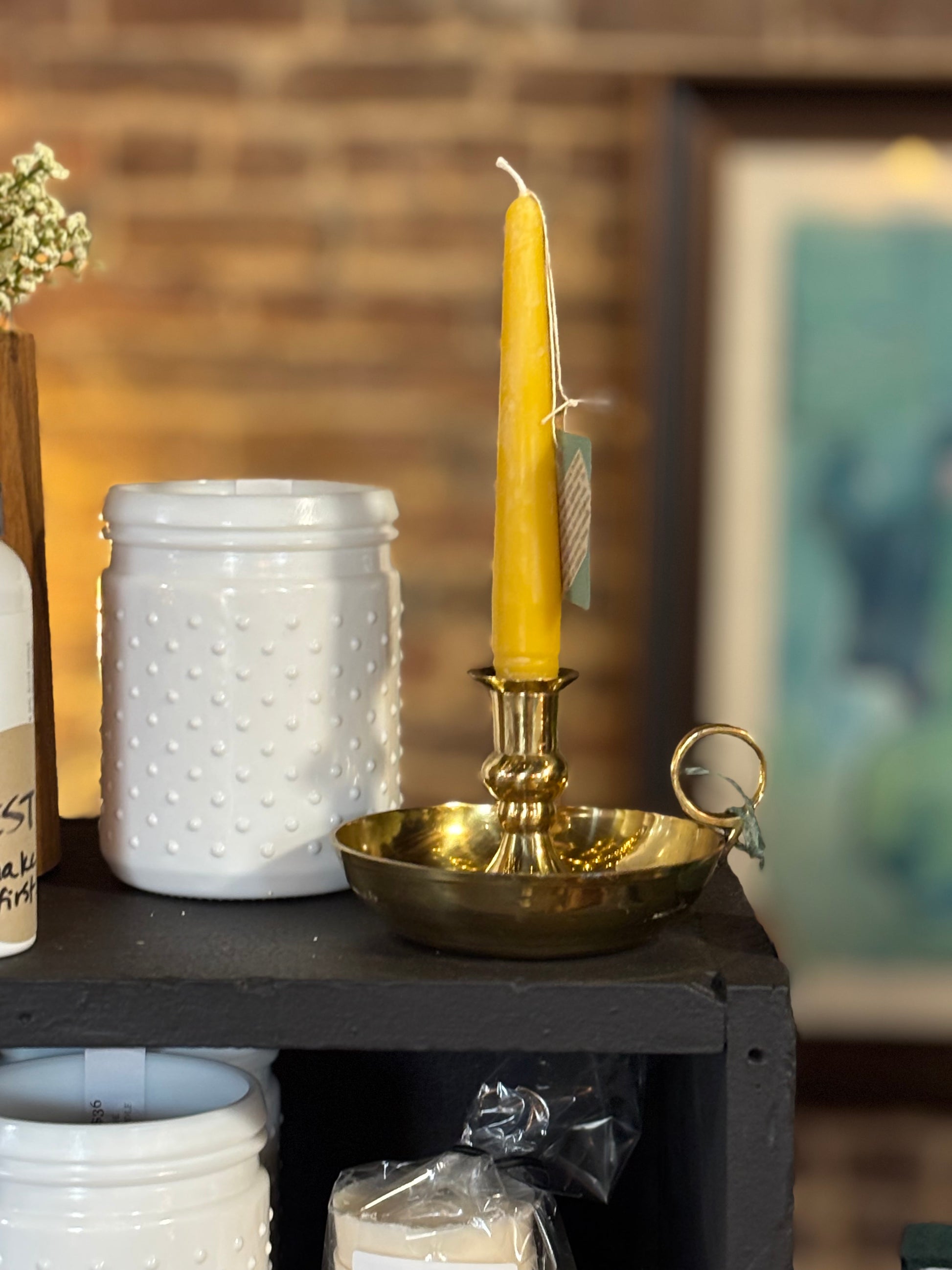 Simple elegance of a classic, traditional taper with zero chemicals. Hand-fluted at the base for a long lasting, dripless burn. They fit wonderfully in standard taper holders as well as vintage brass candlestick holders. (my favorite!) Sold as a pair.